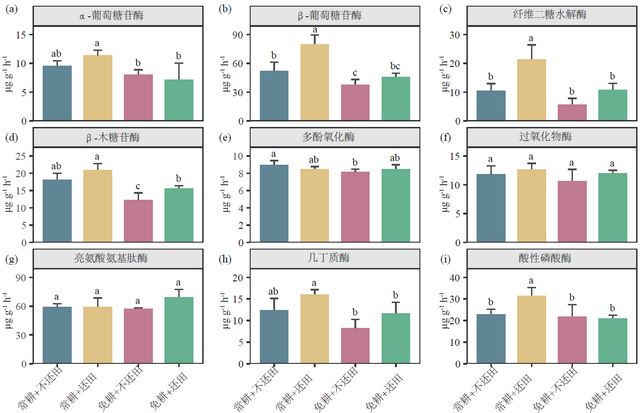 酶活性:常规耕作结合秸秆还田处理的碳、氮、磷水解酶活性最高,表明微生物代谢活动最为旺盛。