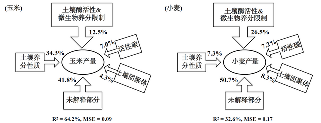 影响玉米产量的主要因素是土壤理化性质;影响小麦产量的主导因素则是酶活性与微生物资源限制。