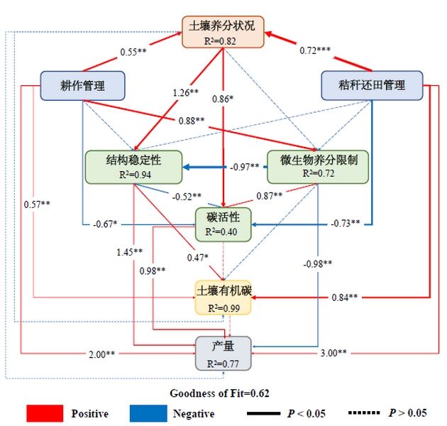 图9对土壤有机碳和产量影响的结构方程模型