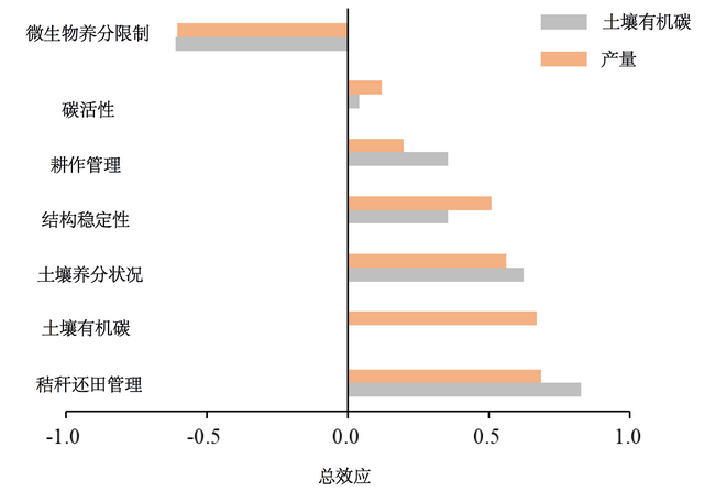 秸秆还田主要通过改善土壤性质和增加碳活性,对土壤有机碳和作物产量产生正向总效应。